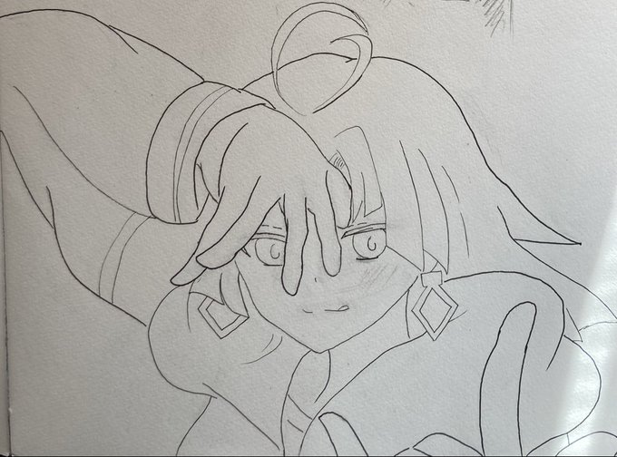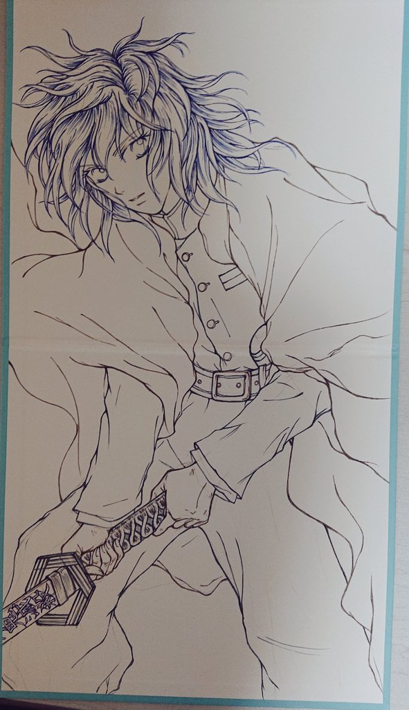 #アナログ絵を流してアナログ民を増やそう #ニジイラ #ペン入れ #進捗どうでしょう2022 うだうだ〜ってしながら( ゚ⅴ゚ ◎) ここまで描けました(>ω<〃)~♡ そろそろ寝る😴とします( 💜´꒳`*) 今日起きたら柄入れがんばります🔥💪(>ᴗ<๑)🙏💓❤💕ところで… 冨岡さんに見えます⁉️この線画🌸