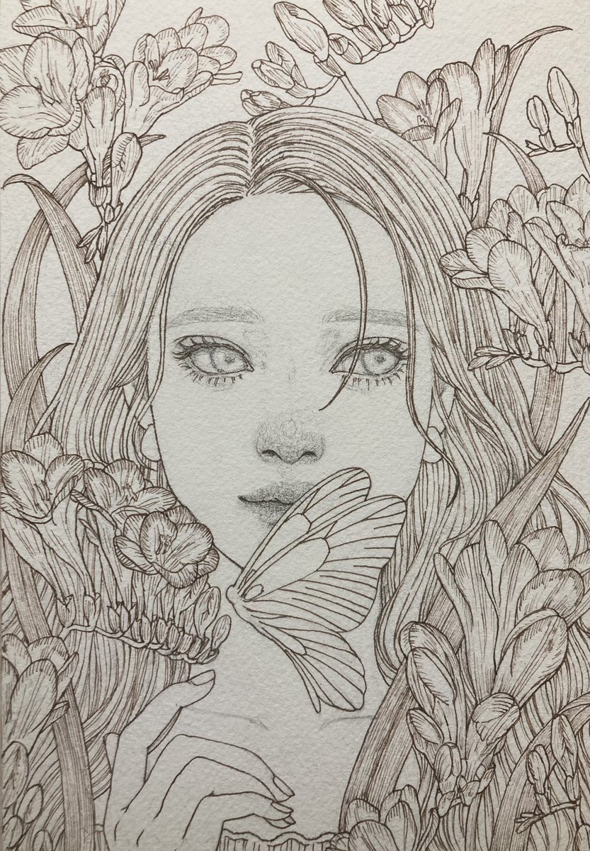 ゆるキャンの各務原桜の線画(ペン入れ)です 後日色塗り予定です😌 #ゆるキャン #各務原桜 #ペン入れ #アナログ #イラスト #アナログイラスト #絵描きさんと繋がりたい #illustration #みんなで楽しむTwitter展覧会