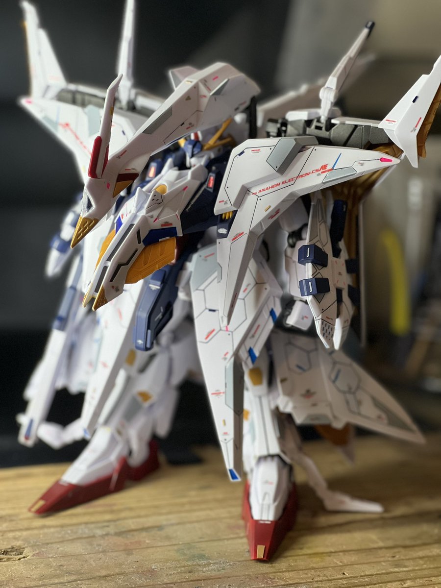 ペーネロペー完成しました! 製作開始から約2週間半長かった... スジホリ地獄とはこのことでした デカすぎて撮影ブースをはみ出す事件が起きましたがとても作るのが楽しい作品でした! #ガンプラ #ペーネロペー #ガンプラの画像を貼るとRTされると聞いて