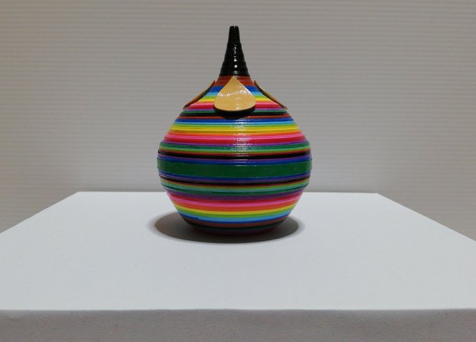 台無しな仕上げをすることで大成功の形にして生きたい。 デザフェスに持っていく予定の新しい子です。 #ハンドメイド #ペーパークラフト #ペーパーアート #張り子 #はりこ #Papiermache #handmade #craft #ハンドメイド好きさんと繋がりたい #デザフェスお品書き #貯金箱
