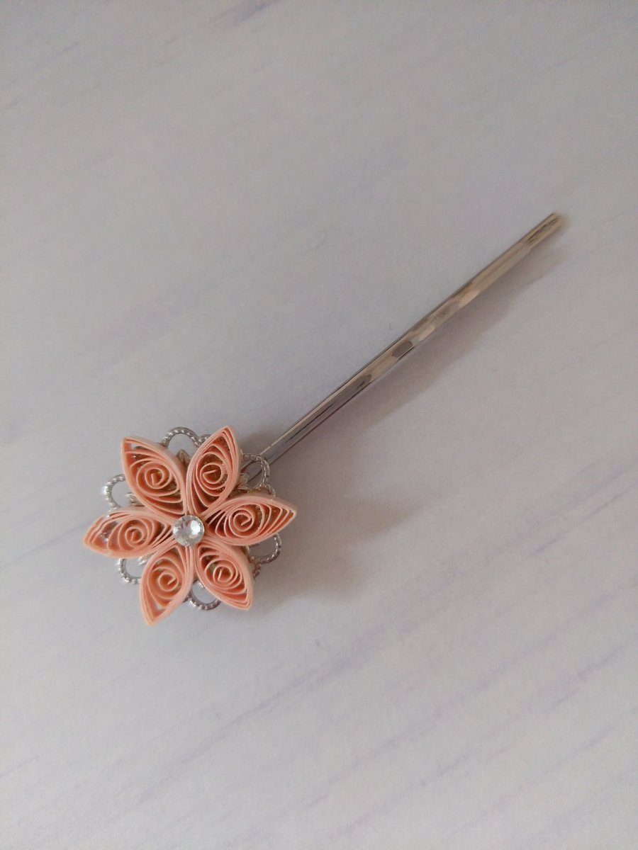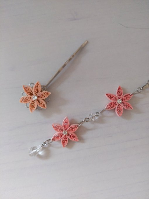 久々のペーパークィリング作品🌼 ノウゼンカズラをイメージしたのだけれど、改めて実物見たら花びらの形違ってた💦 夏っぽい感じのものということで押し切ってみる💀 #ペーパークィリング #ペーパークラフト