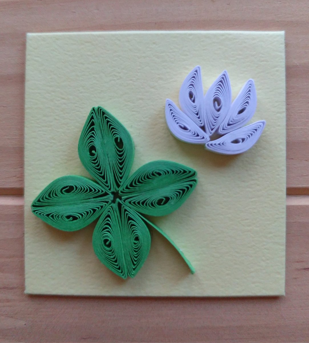 そう言えば、シロツメクサ結構前から満開🍀 ということで、ペーパークィリングのシロツメクサと四つ葉のクローバー🍀 4.6㎝×4.6㎝ シロツメクサをもっと細かく作れるようにしたい #ペーパークィリング #ペーパーアート #ペーパークラフト