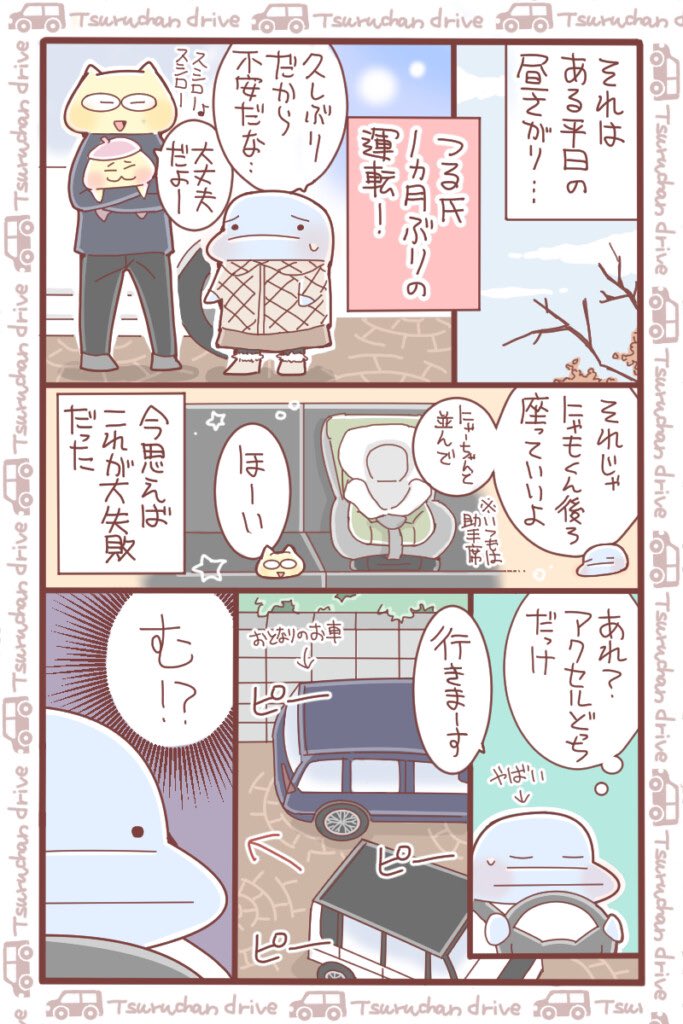 【つるドライブ①】 家族全員だいぶ元気になりました。心配してくださった皆さまありがとうございます🥲✨ しばらく新作はお休みして過去に描いたこちらを連載します〜🚗 #ペーパードライバー #運転初心者 #エッセイ漫画 #コミックエッセイ #漫画が読めるハッシュタグ #つるちゃんぶろぐ