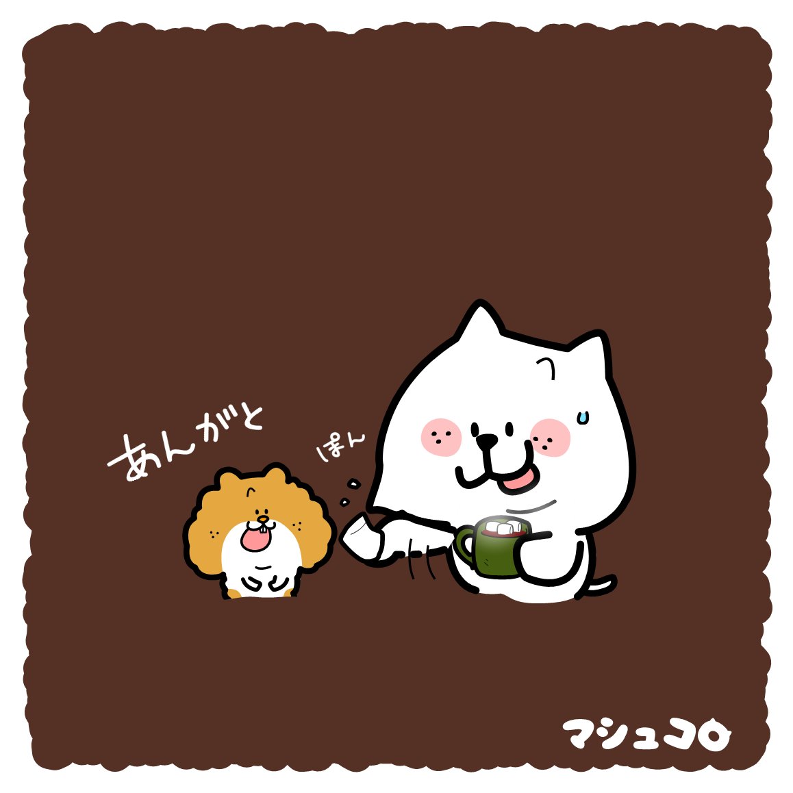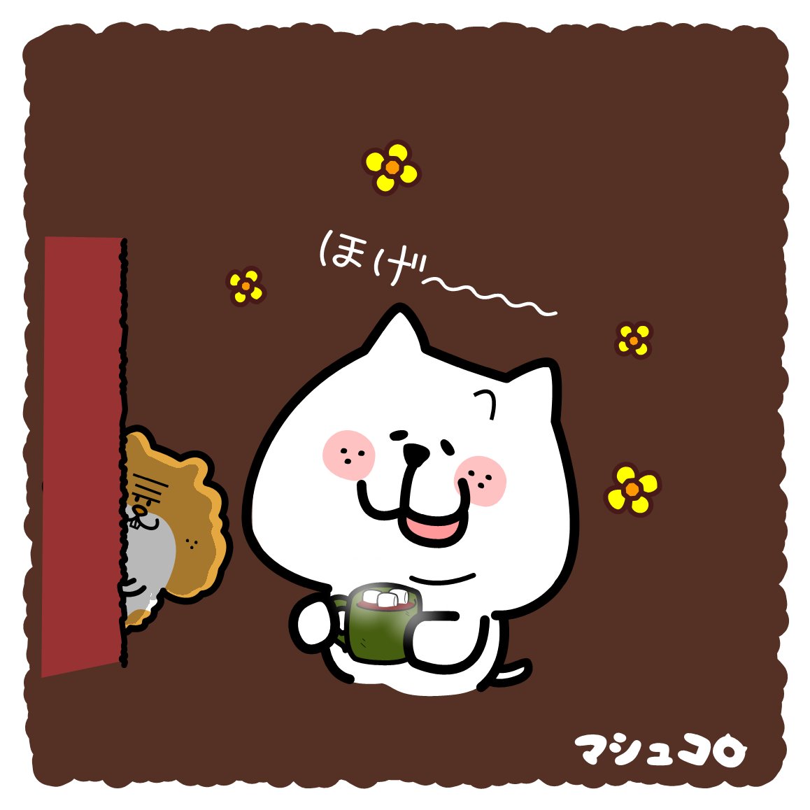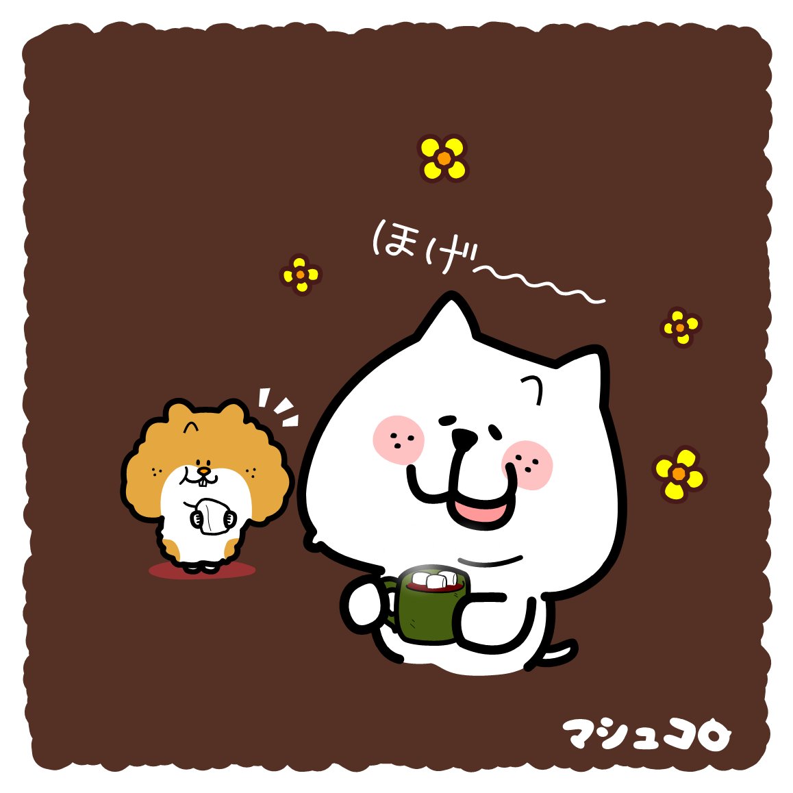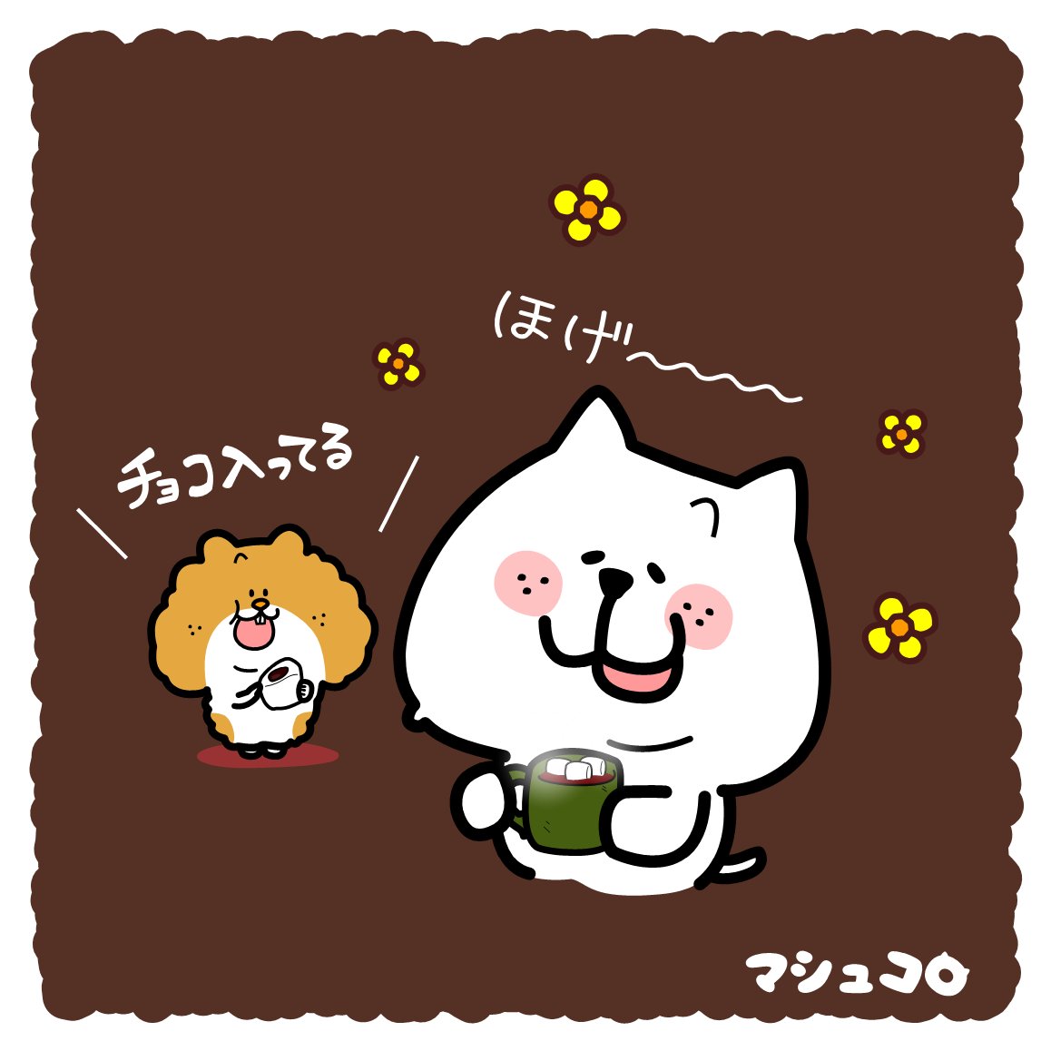 ホットチョコレートで、ちょこっとほっとする😊☕ なぁ~んてね😆 そして、気づいちゃいました。 チョコを食べると衝撃の事実を発見……😋🍫 . #ホットチョコレート #ほのぼの #マシュマロ #イラスト #ゆるい絵 #ゆるいイラスト #イラスト好きな人と繋がりたい #illustration
