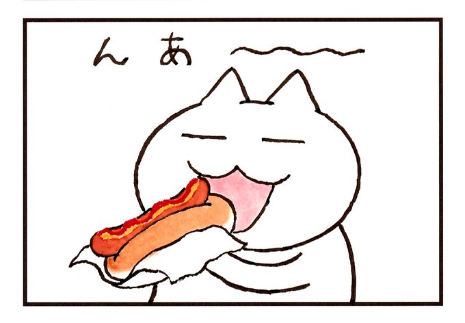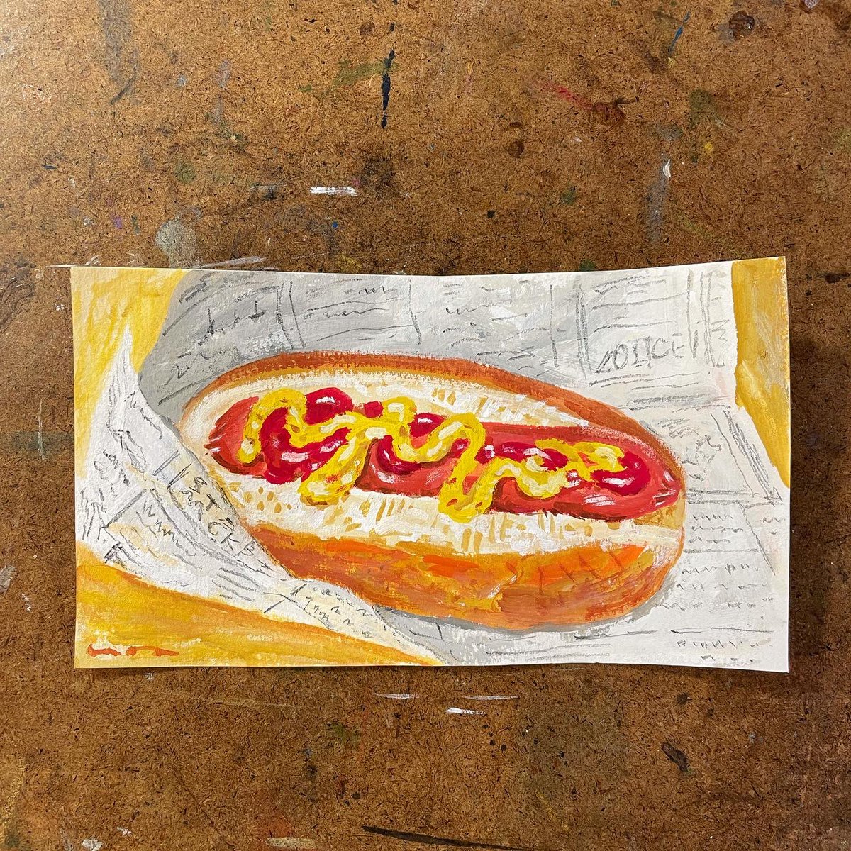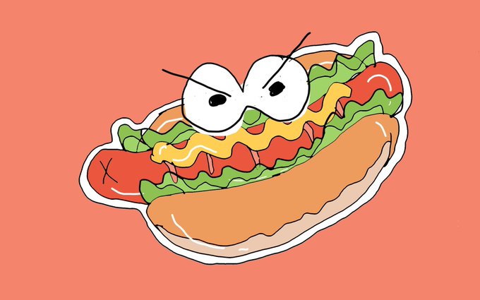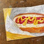今日のライブ配信で描いた ちっちゃめ絵、 はらぺこめがねの直売所にて販売しております。 #絵 #原画 #イラスト #illustration #食べもの #ホットドッグ harapeko-megane.stores.jp