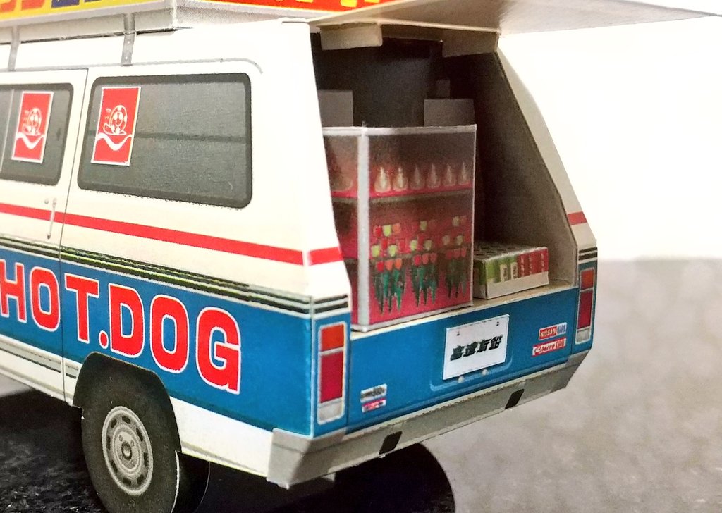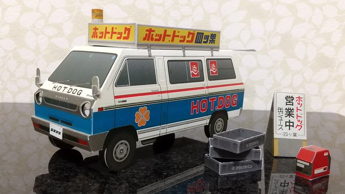 日産 チェリーキャブ 1200 Deluxe 「#高速有鉛デラックス」vol.82 2021年8月号に掲載の濱田良章さんの #ペーパークラフト です☺️ 「#ホットドッグ四ツ葉」さんの移動販売車がモデルになっています☺️ ようやく組み立てができたのでとっても嬉しいです☺️✨ #工作所以 #日産 #日産チェリーキャブ