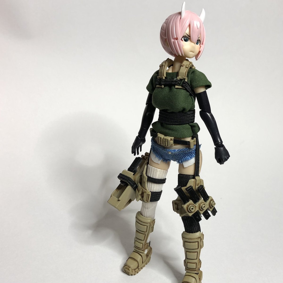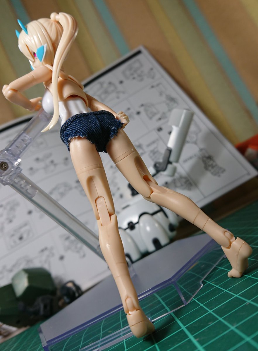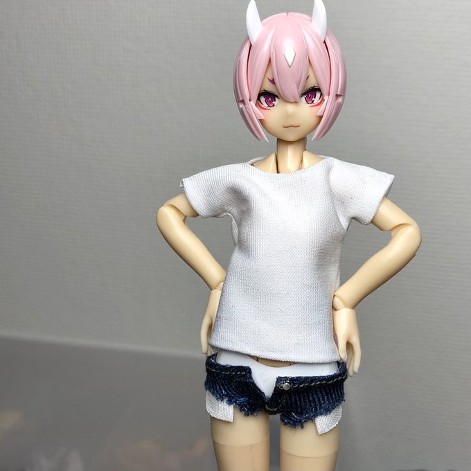 ホットパンツに、ポケットを付けられる様にオプション追加するべく写真撮影中! 写真むずい!(Tシャツも試作中!) えちえちは褒め言葉!😆 えちえちは褒め言葉!😆 #メガミデバイス #ホットパンツ #ポケットショートパンツ