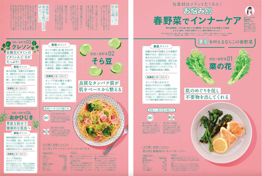 【お仕事】リクルート様「HOT PEPPER4月号」( @hotpepper_mag) 特集「春野菜でインナーケア」のお野菜描かせて頂きました。お料理が美味しそうです!表紙は坂口健太郎さん。ブックビューアで閲覧も出来ますのでご覧くださると嬉しいです→magazine.hotpepper.jp/hot_pepper.html #ホットペッパー