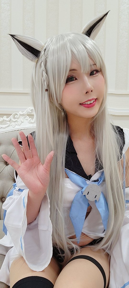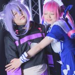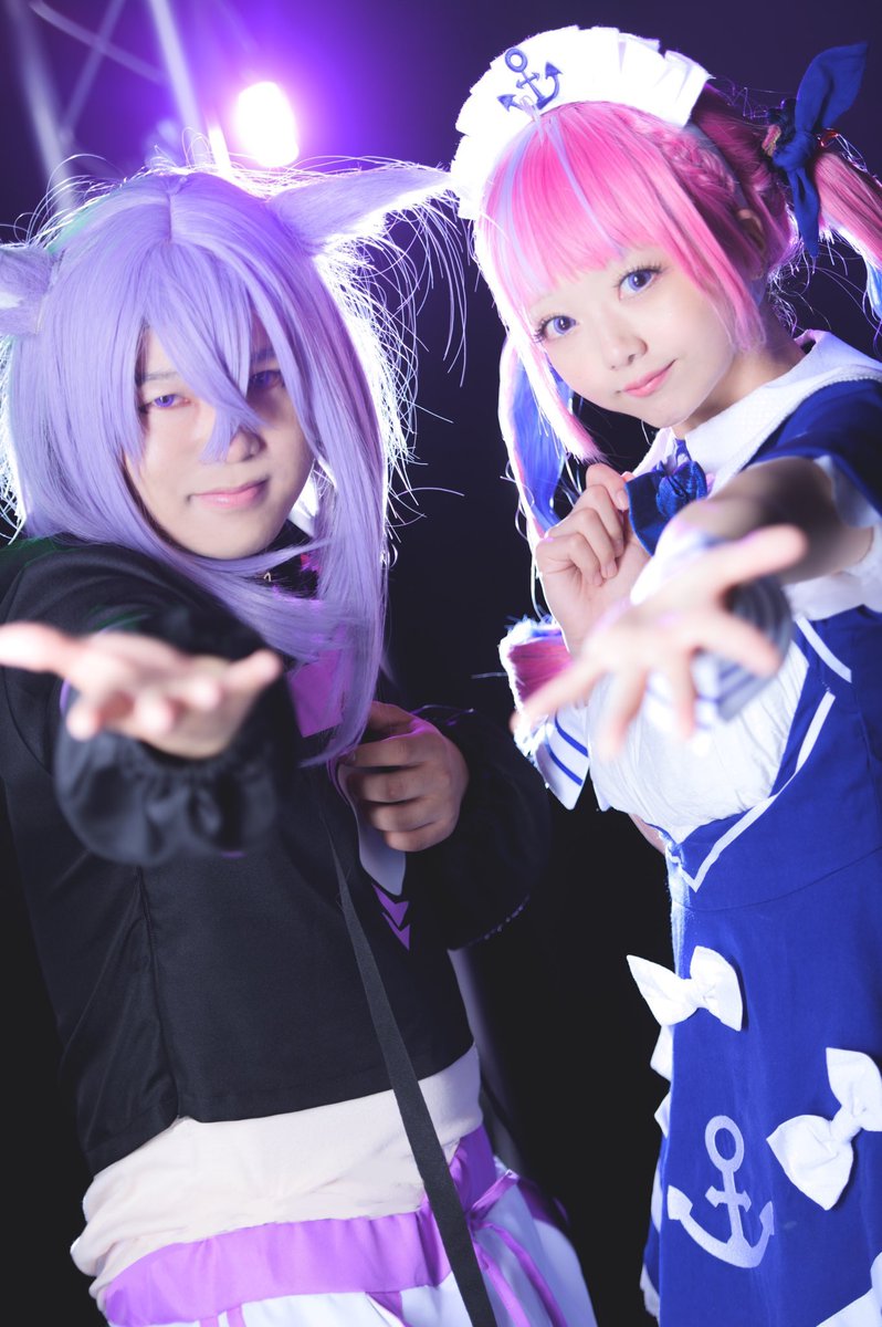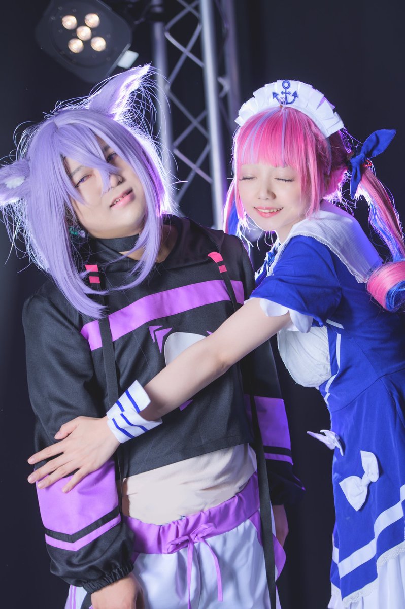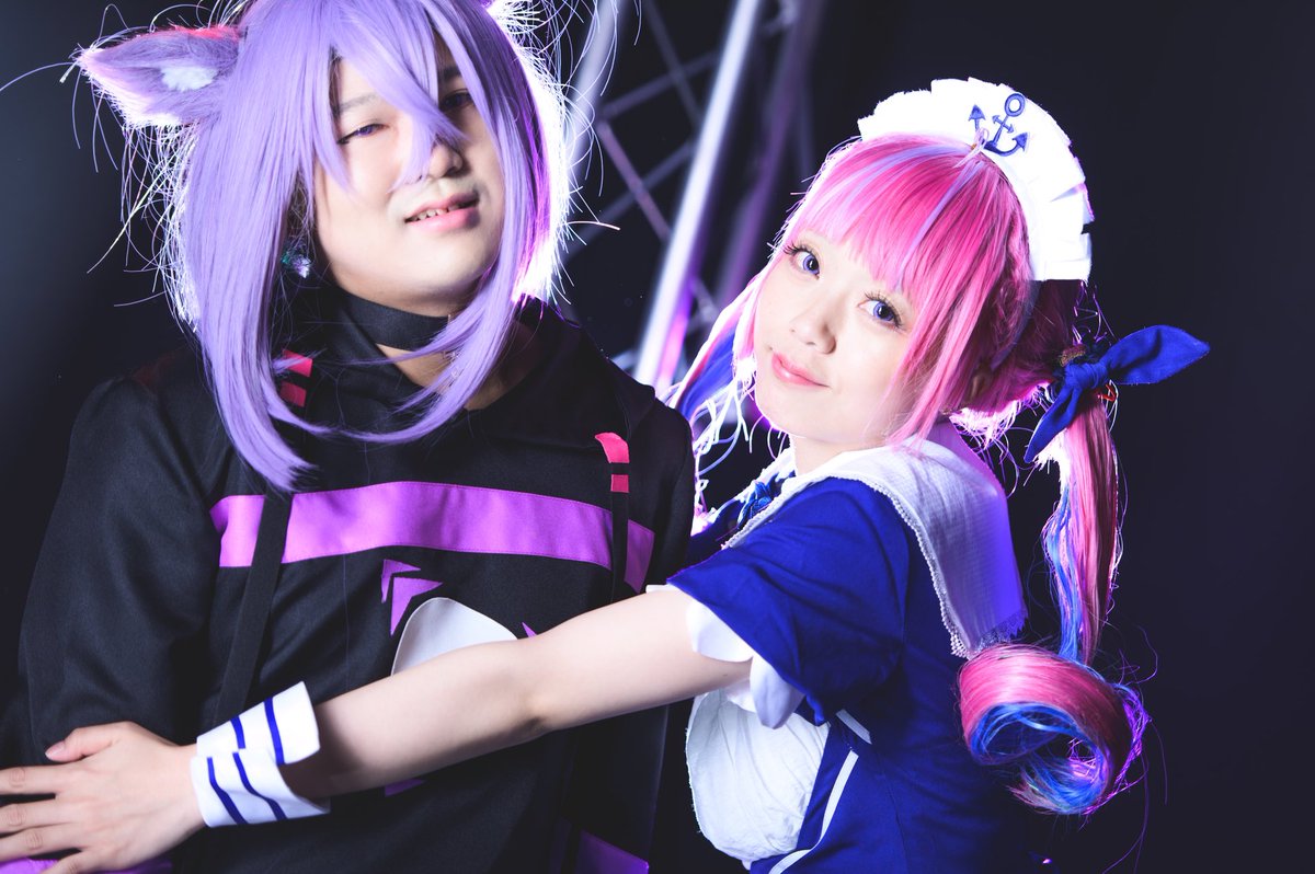 ※コスプレ 猫又おかゆ&湊あくあ ⚓️「おかゆ〜❤」 🍙「あ、あくたーん😅」 Studio under landさん @UnderLand_cos 🍙エタ君 ⚓️美穂さん @hamhammiho0222 📸 ライムさん @KintaChiro #ホロコス福岡0514