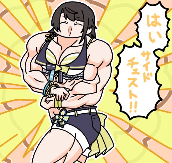 #ホロサマ歌枠リレー 持ち曲に夏のイメージソングがある中、水着お披露目で『お願いマッスル』を選択してくるところ、本当に大空スバル!肩にちっちゃいアヒル乗せてんのかい! #生スバル #プロテインザスバル