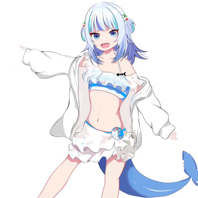 WIP.5 #gawrt #gawrgura #ホロライブサマーに願いを I made some modifications to the previous illustration. And Gura is cute!