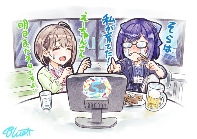 ホロライブの配信は船長から入りまして、当時はYouTubeにこんな面白い配信があるのかと驚きました。 そして彼女たちを布教しようと試みたのがホロライブを描き始めたきっかけですね。 #ホロライブプロ5周年