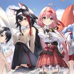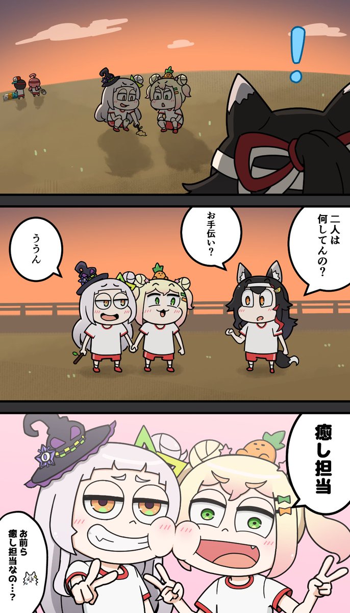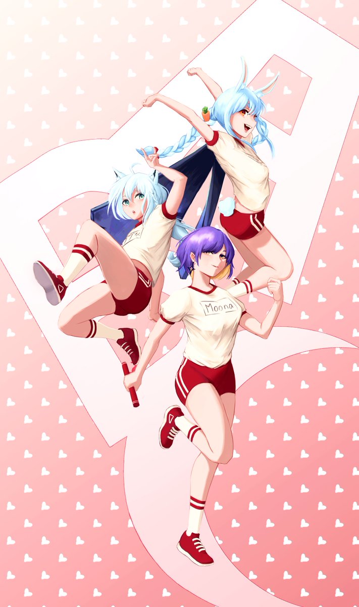 Red team captains Pekora, Fubuki, and Moona clutching their events! 赤チームのキャプテン、ペコラ、フブキ、ムーナがそれぞれのイベントで優勝しました! #ぺこらーと #絵フブキ #HoshinovArt #ホロライブ大運動会2021 #holoSportsfestival