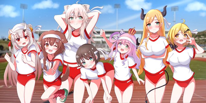 クロニーさんとファウナさん、 そして、ムメイさんのイラスト完了! …残りあと3人だ! #ホロライブ運動会2021 #kronillust #クロニーラ #FineFaunart #ムメ絵 #drawMEI