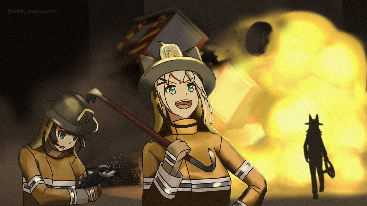 ミオしゃ: ♪もうすぐはじまるよ...(ドドドドドド フブキ:よし、まずは事務所全ての窓を破る! スバル:あっ...ごめん... #ホロ消防隊 #みおーん絵 #絵フブキ #プロテインザスバル twitter.com/elite_nekoyu…