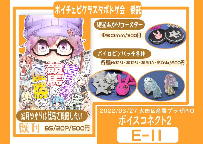 【ボイコネ2お品書き】 3月27日開催のボイスコネクト2に参加します! 声月6の既刊とグッズを少量持っていきます!ピンバッチ は約3年前に頒布した物を復刻!! 当日は【E-11】ボイチェビクラスタボドゲ会さんに委託で置かせてもらっています〜!! #ボイスコネクト2サークル参加 #ボイスコネクト2