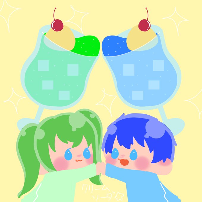 この2人はソーダ組だと思ってる( ゚ェ゚) #初音ミク #KAITO #VOCALOID #ボカロ #イラスト #絵描きさんと繋がりたい #ボカロ好きさんと繋がりたい #ボカロPさんと繋がりたい