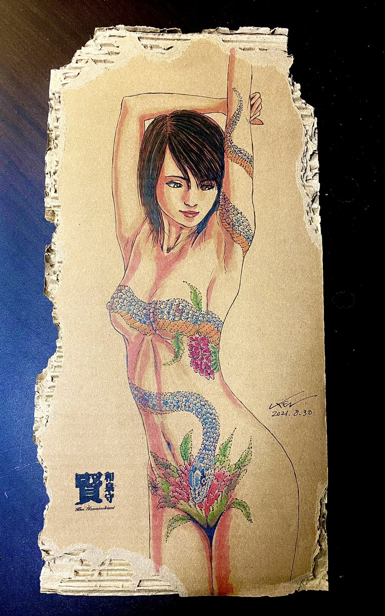 #年賀イラスト 完成 背景は敢えて未着色 こいつを色々弄って来年の年賀状に加工 住所交換してるフォロワーさんには漏れなく届く(多分) #アナログイラスト #段ボールアート #ペン画 #2022年 #寅年 #bodydrawing #bodypaint #tattoo #タトゥー #ボディドローイング #ペン画