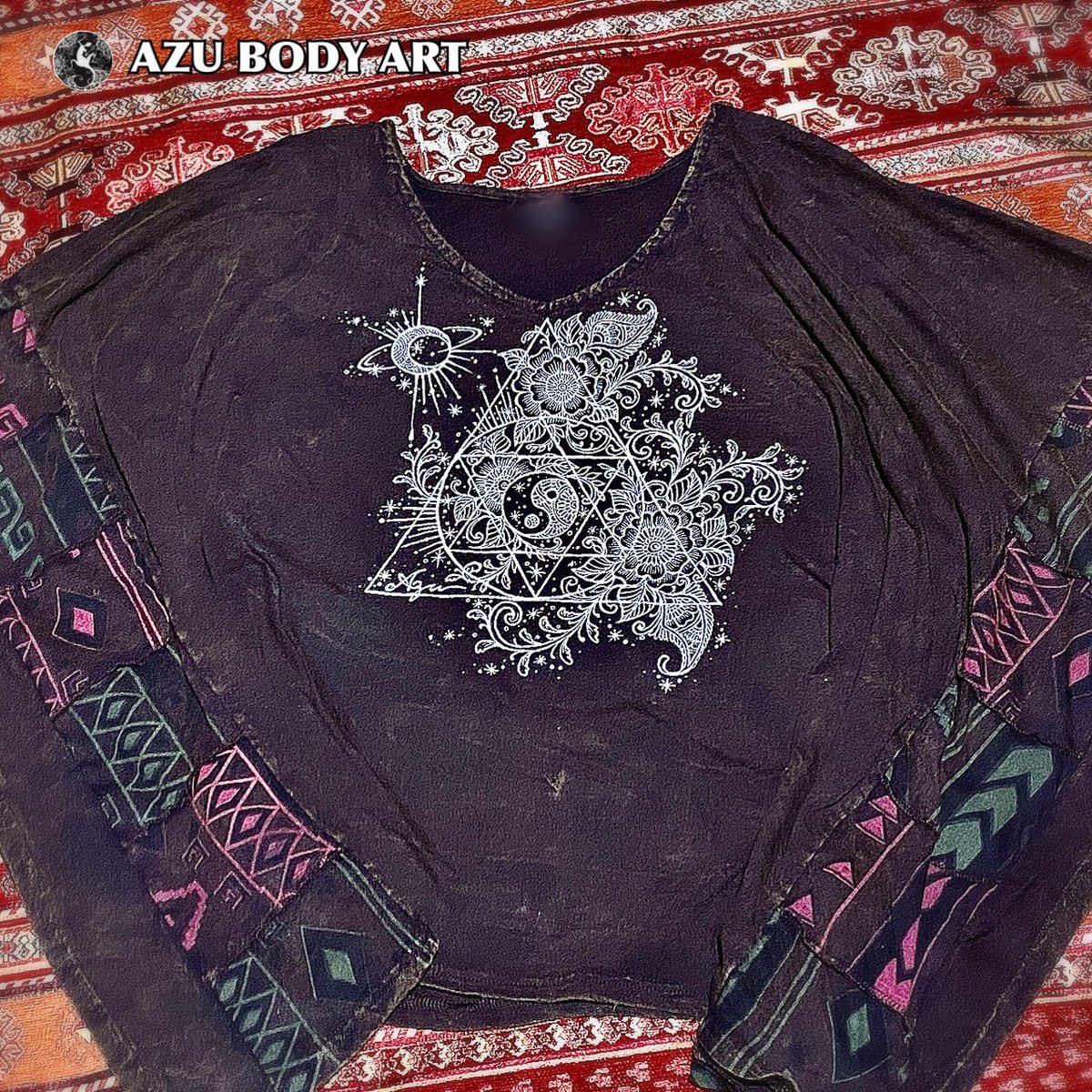 無地の服に飽きたので 布画き絵の具でペイントして生まれ変わる。 #ジャグアタトゥー大阪 #ジャグア #ジャグアタトゥー #メヘンディ #ヘナタトゥー #ヘナアート #ボディーアート #ボディーペイント #消えるタトゥー #ジャグアタトゥーデザイン #ジャグアアート #ジャグアタトゥーサロン