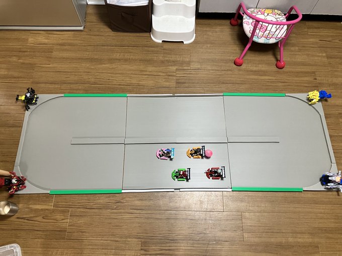 DTA専用オフのために作った 長机サイズDTAサーキットコース 8人で無限に遊べるステージということに気づいたꉂ(ˊᗜˋ*) ラジコン4人 ボトルマン4人 ラジコンに風船と針を付けることでレースだけでなく風船バトルも可能 ボトルマン側は動く的を撃つ楽しさ🤭 #デスクトップアーミー #ボトルマン twitter.com/i/web/status/1…