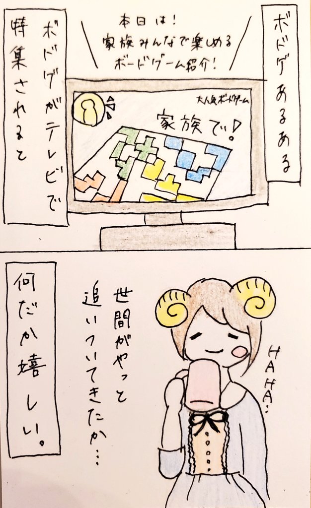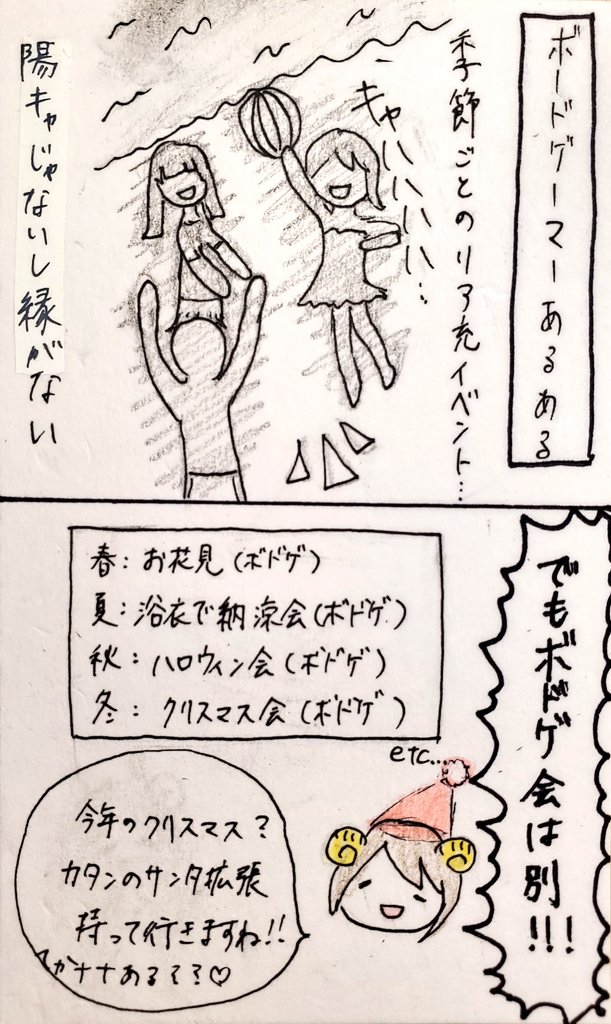 ? 「クリスマス予定ある?🎄」 🐏「お菓子持ち寄って(ボード)ゲーム会します」 ? 「いいね!友達?」 🐏「いえ、全員初対面ですが12時間遊びます」 ? 「なにそれこわい😂 めっちゃ陽キャじゃん」 #ボドゲ #ボドゲ好きと繋がりたい #漫画が読めるハッシュタグ