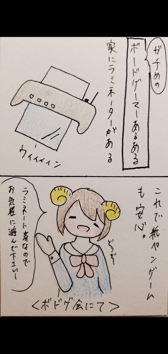 友達が家にくると「これ何?」って聞かれて、「ラミネートする機械」って答えると「なんでそんなの家にあるの😂笑」って言われる🐏 家にラミネーターあるガチ勢の方、どれくらいいますか? #ボドゲ #ボードゲーマーと繋がりたい #漫画が読めるハッシュタグ