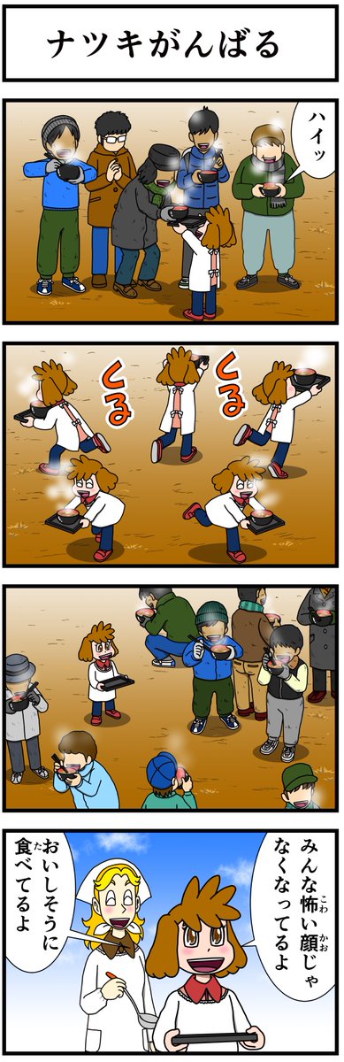 #キャシーとわたし 去年の12月のふたりをちょこっとリバイバル おしまい〜 #漫画 #漫画が読めるハッシュタグ #漫画がよめるハッシュタグ #4コマ #4コマ漫画 #4コママンガ #過去絵を投げて絵を描いた気になろうキャンペーン #年末 #ボランティア #ほのぼの #manga #炊き出し
