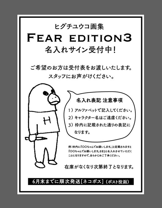 そんなわけで、今回の展示は是非見に来ていただけると嬉しいです。 親バカ的な作品のみ… #ボリスカードブック刊行記念 #ボリス雑貨店 fear3の名入りサイン受付もお気軽にどうぞー! あ、字を間違えてますね…
