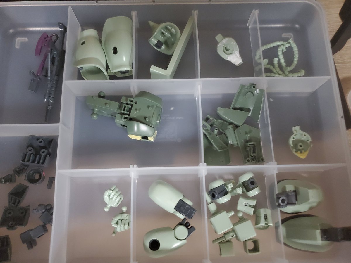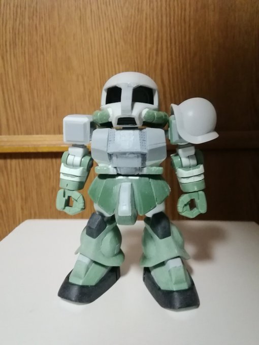 進捗! つかれたぁ 取り敢えず 頭部形状変更 胴体部拡張 各部合わせめ消し 後はめ加工 後はパテの硬化待ち #ガンプラ #ガンプラ好きと繋がりたい #ガンプラの画像貼るとRTされると聞いて #ガンプラは自由だ #ザク #ボルジャーノン #ボルジャーノンに花束を #ターンエーガンダム