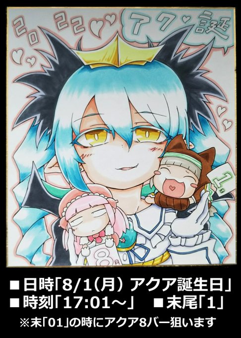■アクア様誕生日企画告知 明日アクア様誕生日合わせの時報とイラスト企画の告知になります 興味有の方は気軽にご参加宜しくね! ■日程「8/1(月)」 ■時間「17:01~」 ■末尾「1」※「01」の時アクア8バー狙い #ボンガ時報 #アクア誕生日おめでとう