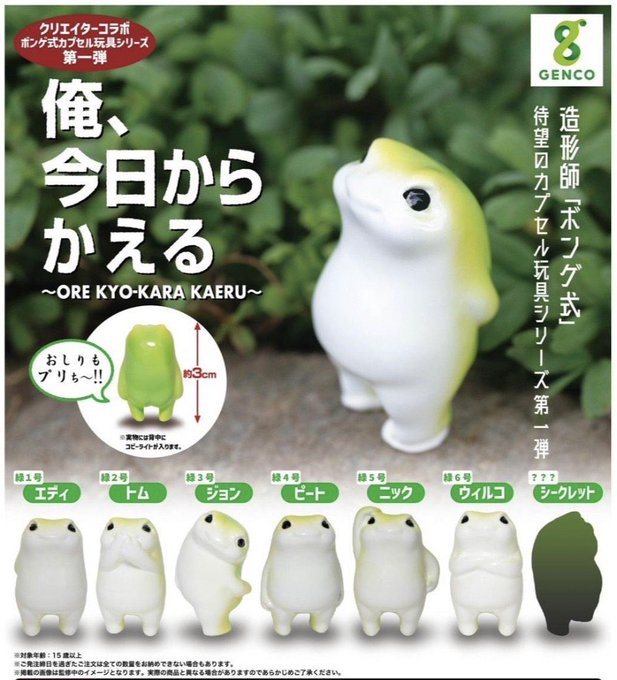 企画段階から私もメーカーさんも思っている事ですが、 うちのかえるガチャの良いところは、 「同じのが出ても全然かわいい!!」 ってところです。 被ってもかわいい!被らなくてもかわいい!! (だからいっぱい回してね∥д・) #ボンゲ式カプセル玩具 #俺今日からかえる #ボンゲ式TOYS twitter.com/official_genco…