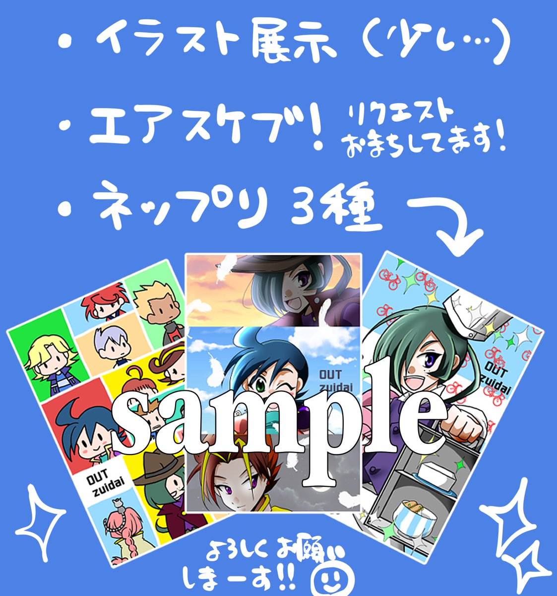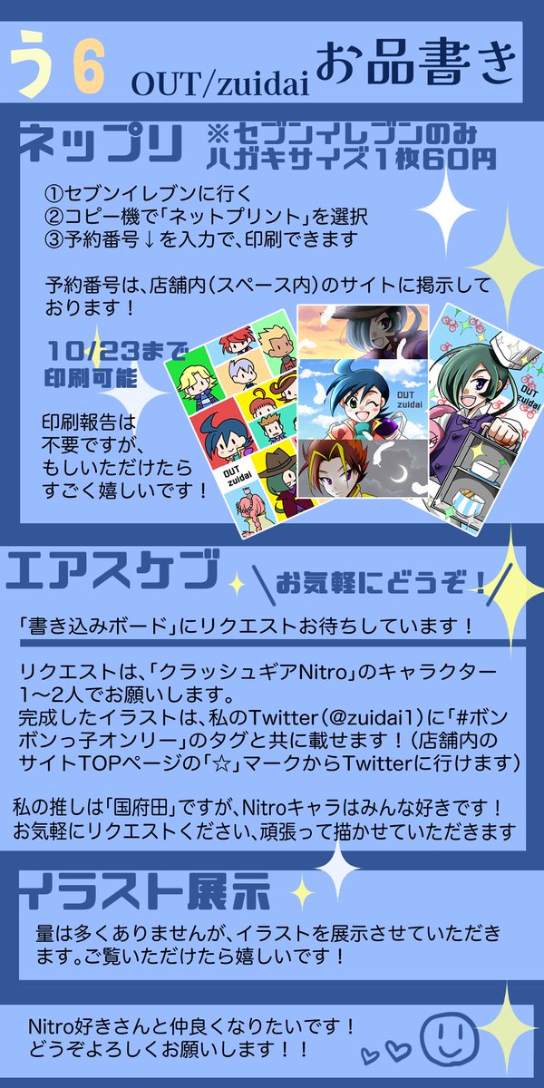 #ボンボンっ子オンリー お疲れ様でした!!Nitroでスペース頂戴したのは初めてだったのですが、ものすごく楽しかったですー!!😊💕ありがとうございました‼️ エアスケブはあと2枚作成中なので、しばしお待ちください〜 イベント用に作ったサイト👇しばらく展示します😊 zuidaif.wixsite.com/out1