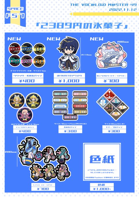 🍨お品書き🍨 ■「THE VOC@LOiD M@STER49」11月12日(土) スペース番号『 F57 』にてお待ちしてますので気軽に立ち寄ってもらえたら嬉しいです…! (実物写真はこのツイートに少しずつ繋げていきます) #ボーマス49 #ボーマス #2389円の氷菓子