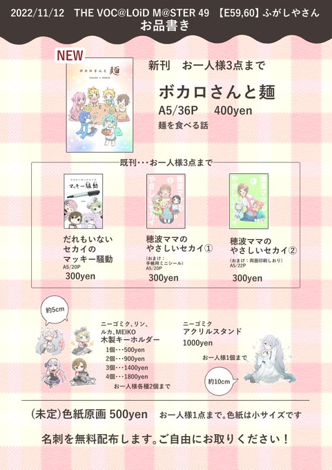 🍨お品書き🍨 ■「THE VOC@LOiD M@STER49」11月12日(土) スペース番号『 F57 』にてお待ちしてますので気軽に立ち寄ってもらえたら嬉しいです…! (実物写真はこのツイートに少しずつ繋げていきます) #ボーマス49 #ボーマス #2389円の氷菓子