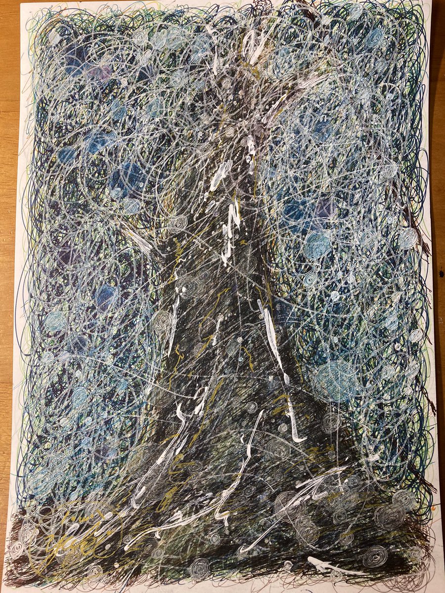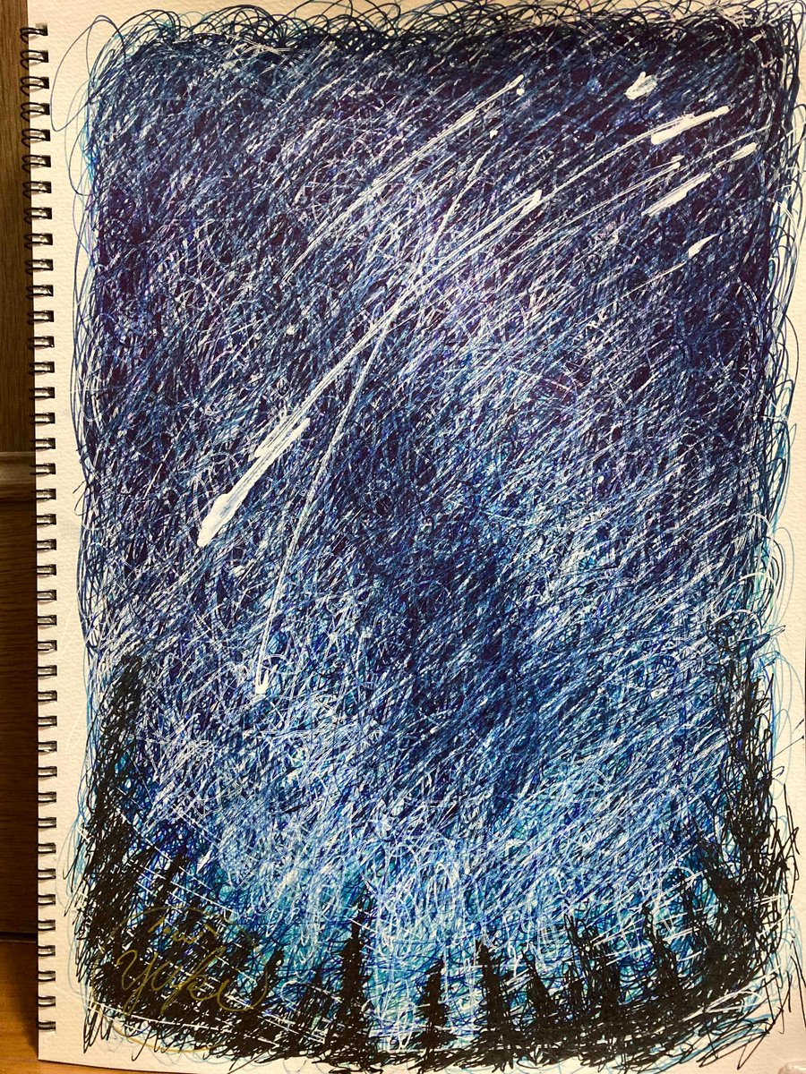 ボールペンで綺麗な夜空を描きました! やっぱSIGNOの1mm白ボールペン最強ですね!このペンが無いと自分の作品は完成しないと言っても過言ではないですね( ˘ω˘ ) #イラスト #ボールペンアート #ボールペン画 #絵柄が好みって人にフォローされたい #絵師さんと繋がりたい