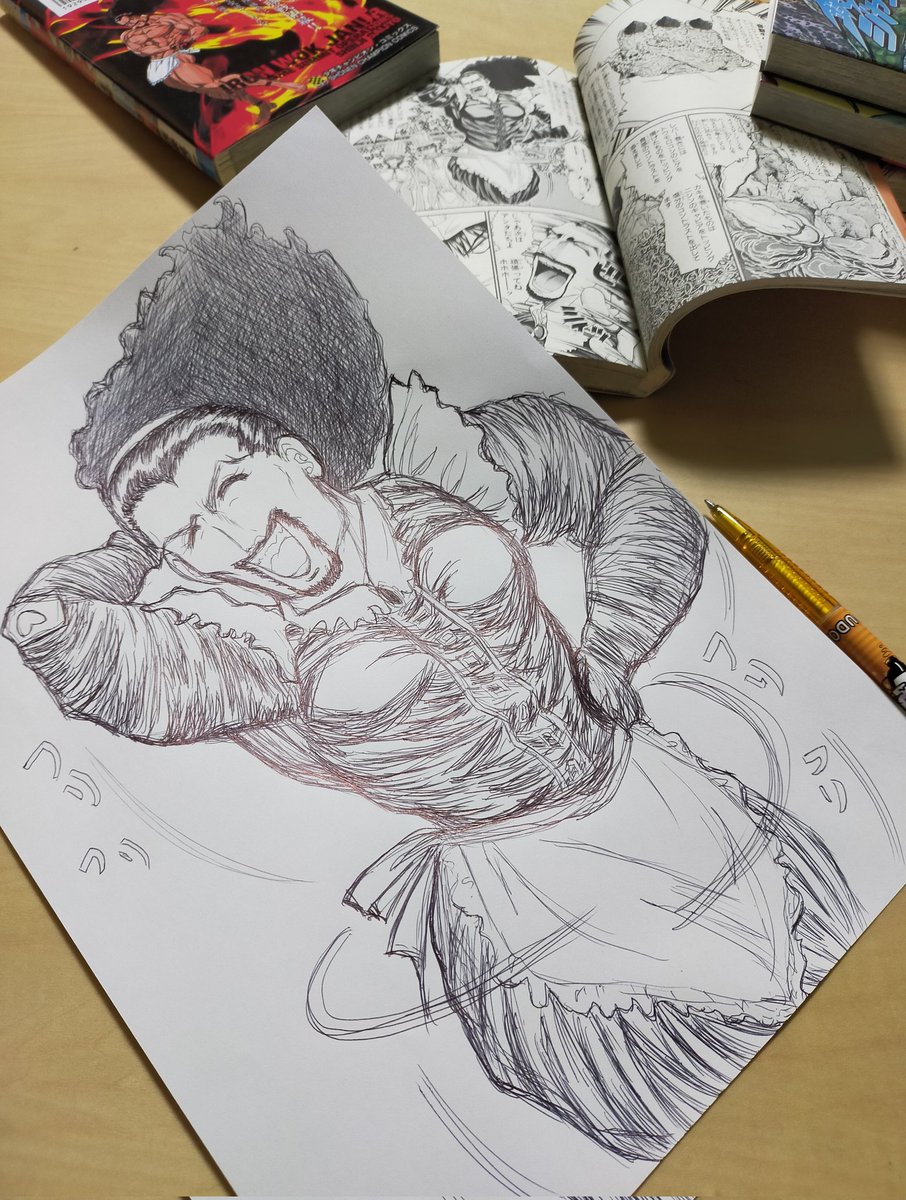 おはようございます。 ぱるち通信番外編その14 特集:Mariya【@private_pride】さんとのコト。 (ああ、引き返せない(;'∀')) 相変わらずボールペン一発描きですが田中さんの腕失敗した。描かないとこうなるのですね。#ラクガキ #ボールペン一発描き