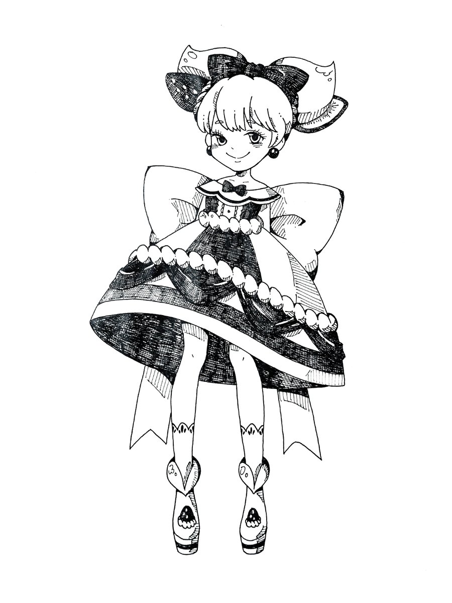 『shortcake🍓』 丸口金のクリームといちごが乗ったショートケーキをイメージして描きました! 髪型とかワンピースの感じとか、ちょっと細かいところまで頑張ってみました! リクエストありがとうございました〜! #絵描きさんと繋がりたい #ボールペン画 #illustraion