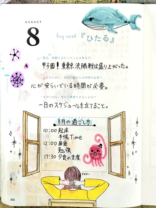 今月の週末野心手帳✍️ Wishlistに夏休みの過ごし方書いてみた! #一日一絵 #絵描きさんフォロバ100 #手帳ゆる友 #手帳 #手帳の中身 #週末野心手帳 #イラスト好きな人とつながりたい #絵描きさんと繋がりたい #ポエム #イラストエッセイ