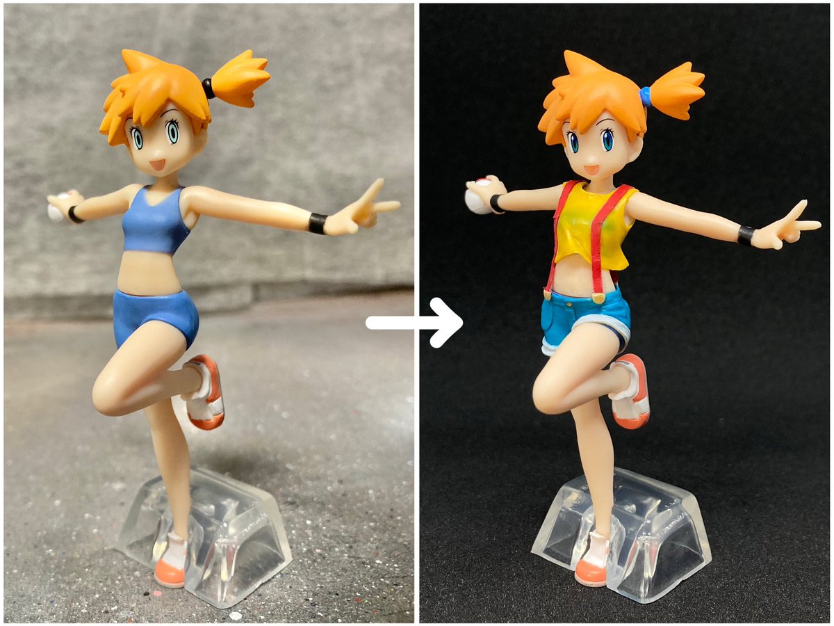 #今年作ったプラモ晒そうぜ プラモじゃないけど1つ追加です。 #ポケモンスケールワールド のカスミさんを改造しました。 スケールは1/20。 服はエポキシパテ、サスペンダーは薄めの色画用紙で作りました。 これで作り納めです。