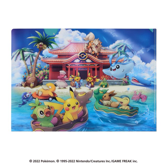 📢おしらせ📢 ポケモンセンターオキナワが本日8月11日(木)グランドオープン✨ こちらのメインアートを担当させていただきました! トリトドン風の船に乗ってやってきたみんなを、エイサー衣装のピカチュウたちがお出迎え🏝🐚🌺 素敵なグッズもたくさんあるのでぜひ!☀️ #ポケモンセンターオキナワ