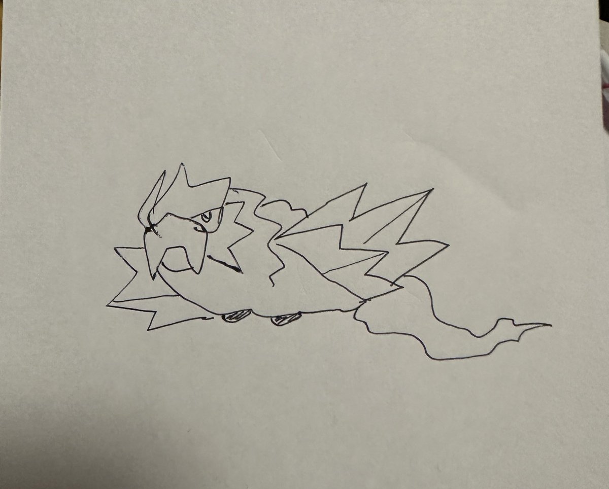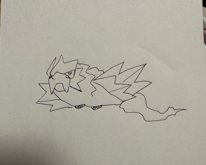 てか、古代スイクンが二足歩行の恐竜で、古代のライコウが首長竜になったってことは 古代エンテイこれたぶんこんな感じでプテラノドンになるわ 現代のエンテイにも羽の名残みたいなのあるし #ポケモンプレゼンツ