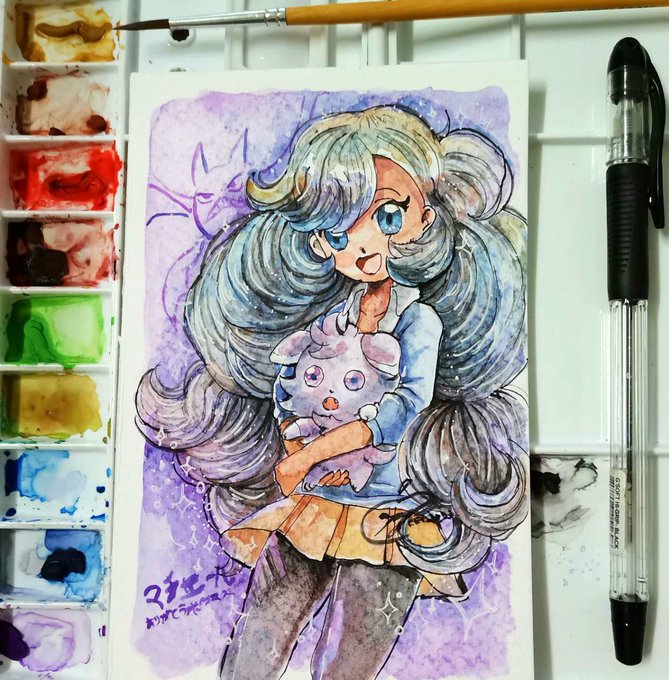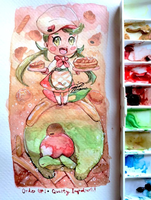 お待ちどおさま!🥧🫓🥯🥖🥐 Watercolor A5 #ポケモンマスターズEX #ポケマス #ポケマスEX #PokemonMasters #PokemonMastersEX #マオ #タルップル