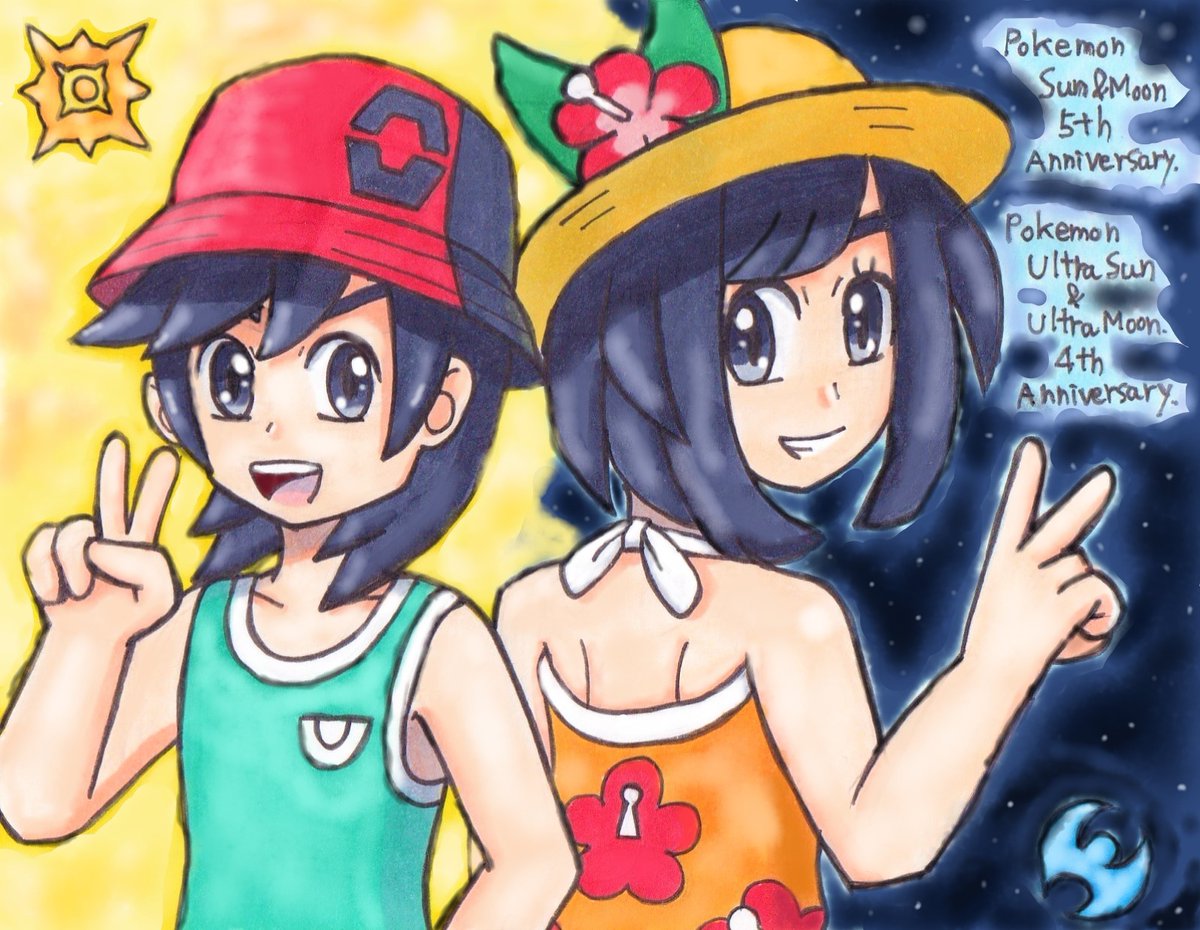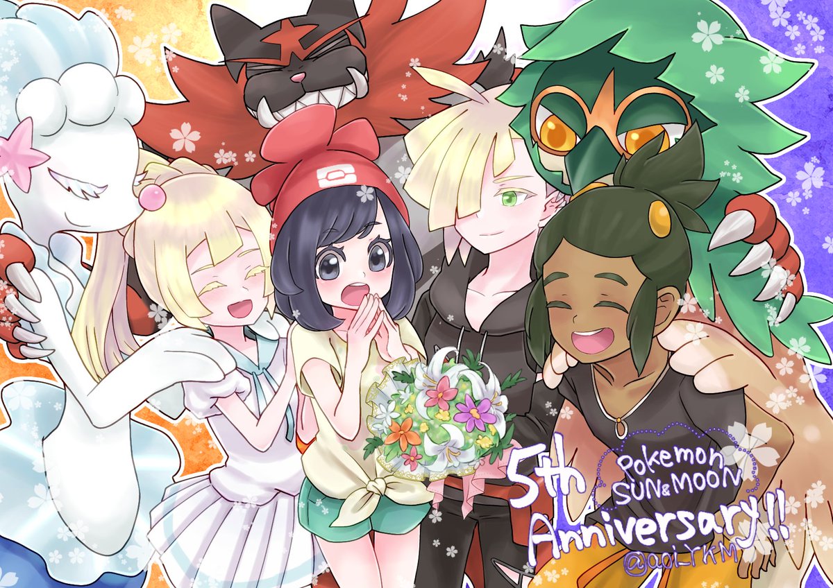 大好きなキャラ、リーリエとハウに出会わせてくれたサンムーン!ありがとうございます✨ アローラメンバーに、リーリエが旅先からビデオ通話してきてくれてたらいいな~な妄想♪ #ポケモンSM5周年 #pkmn