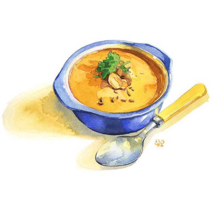 【仕事告知】東京四季出版様(@tshikipub)「俳句四季」21年12月号連載:藤村公洋様(@kurosuguri43)「人参と柿のポタージュ」挿絵2点描かせて頂きました。よければ是非ご覧ください。 #食べ物イラスト #水彩画 #挿絵 #人参 #ポタージュ #watercolor #foodillustration #carot