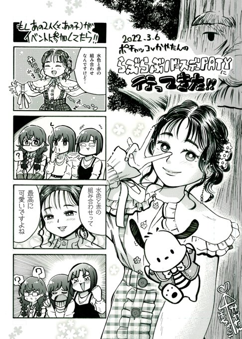 先週行って来た奥野かやたんさんのイベントのやつ(夜の部🌙) 質問コーナーでお召し物の事を聞かれた際にフワッと浮かんだ妄想を4コマで。改めておめでとさんです😚🎉🎊🐶 #言うても僕の他にも同じ事考えたワグナーがあと301人くらいはいると思う #ポチャかや #WUG_JP