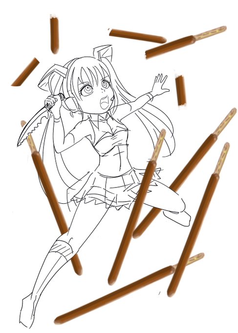ポッキーの日に、途中になったイラスト🎉 投稿は、間に合わなかったけどオタ活みたいな動きをしている猫と一緒に祝ってました✨ #ポッキー #ポッキーの日2022 #イラスト #イラスト好きな人と繋がりたい #わにまる #動物イラスト #猫