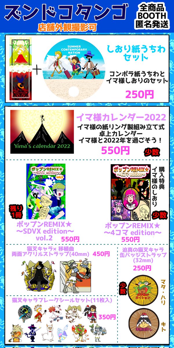 2/13ポックエ5お品書き出来ました! 当日は【エリアA:う2 さよならラジオ】にてお待ちしております🌼 よろしくお願い致します⭐️ (画質があまり良くないので見やすい画像はツリーのツイート参照でお願いします🙇♂️) #ポックエ5 #ポックエ5新作 #ポックエ5お品書き