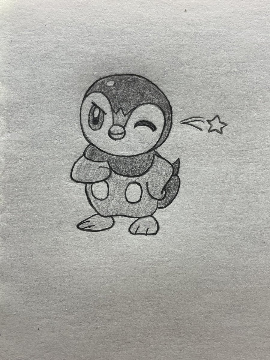 #落書き #お絵描き #イラスト #ポケットモンスター #ポケモン #ダイヤモンド・パール #ポッチャマ #ペンギンポケモン 頼れるポッチャマパイセン!!! (久々に絵描いて楽しかった🐧)