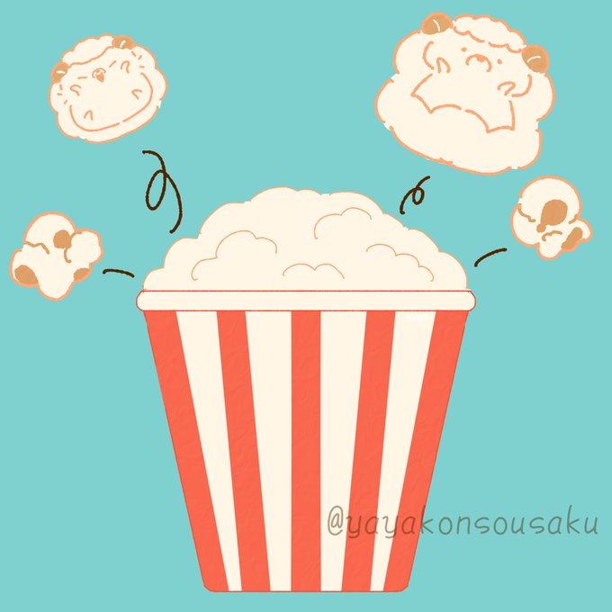 本日は #ポップコーンの日 らしいです! ささっと3時間ぐらいで描こうと思ったけど到底できるワケもなく、トータル6時間はかかったwww 早描きできる人羨ましい #カプネロのイラスト #イラスト #イラスト好きさんと繋がりたい