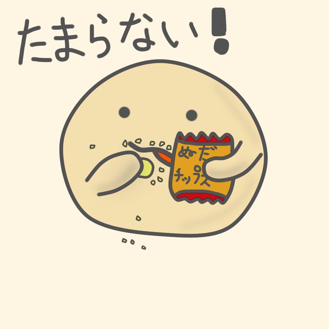 これで最後の一枚。。🍟 がしばらく続くおもち #おもちの日々 #シンプルおもち #食べ出すと止まらない #ポテチ #ゆるいイラスト #ゆるキャラ #みんなで楽しむTwitter展覧会 #ART_RT $picRT
